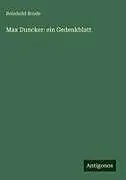 Max Duncker: ein Gedenkblatt