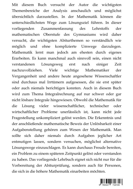 In diesem Buch werden die in dergymnasialen Oberstufe zur Analysis bzw. Infinitesimalrechnung geforderten Inhalte an Beispielen vorgestellt und passende Aufgaben ausführlich, möglichst anschaulich und verständlich durchgerechnet. Autorentext Der in Nürnberg ge...