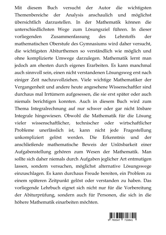 In diesem Buch werden die in dergymnasialen Oberstufe zur Analysis bzw. Infinitesimalrechnung geforderten Inhalte an Beispielen vorgestellt und passende Aufgaben ausführlich, möglichst anschaulich und verständlich durchgerechnet. Autorentext Der in Nürnberg ge...