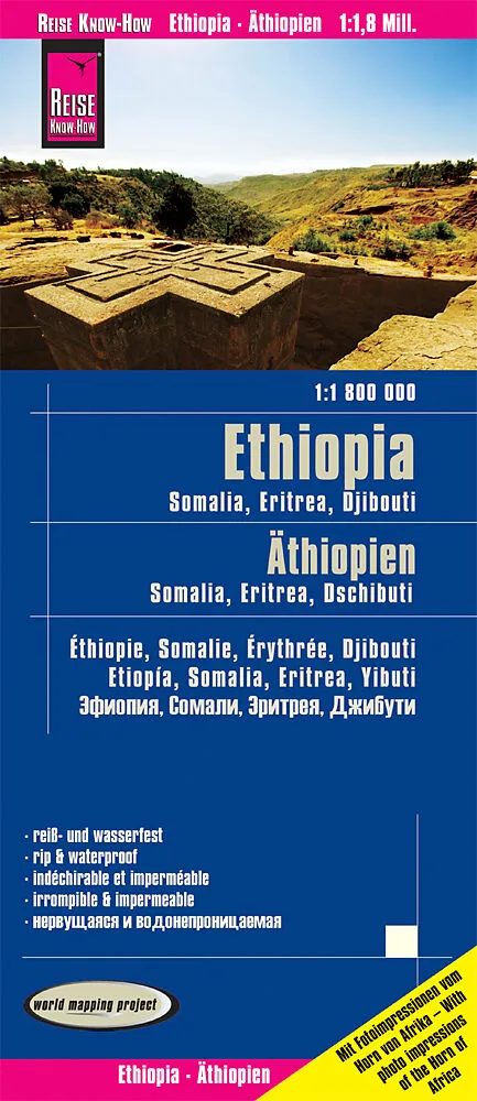 Hochreißfeste und 100% wasserfeste Landkarte "Äthiopien" (mit Somalia, Eritrea, Dschibuti) aus der Serie world mapping project, erschienen im Reise Know-How Verlag. NEU: Diese Karte enthält - als Hilfe bei der Reiseplanung - Fotos von wichtigen Sehenswürdigkei...
