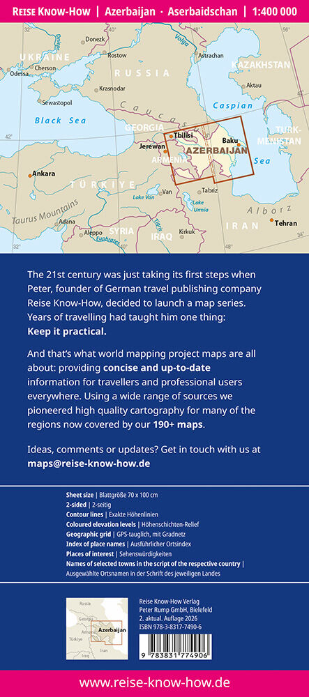 Landkarte Aserbaidschan: Reißfest, wasserfest und beschreibbar wie Papier ideal für unterwegs Die Landkarte Aserbaidschan von Reise Know-How ist der perfekte Begleiter für jedes Abenteuer unterwegs: Reißfest, wasserfest und beschreibbar wie normales Papier opt...