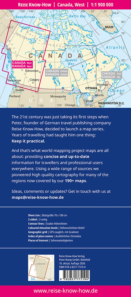 Landkarte Kanada, West: Reißfest, wasserfest und beschreibbar wie Papier ideal für unterwegs Die Landkarte Kanada, West von Reise Know-How ist der perfekte Begleiter für jedes Abenteuer unterwegs: Reißfest, wasserfest und beschreibbar wie normales Papier opti...