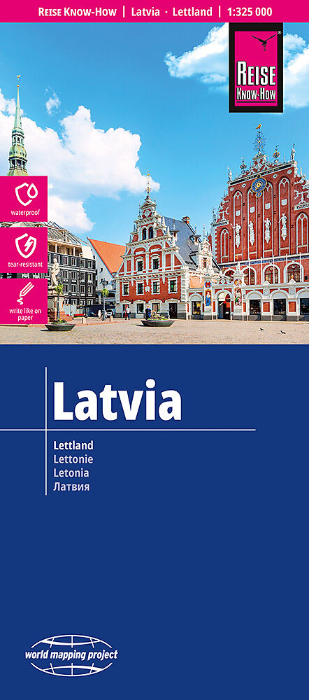 Hochreißfeste und 100% wasserfeste Landkarte Lettland aus der Serie world mapping project. Reise Know-How Landkarten zeichnen sich durch besonders stabiles Kunststoffpapier aus, das beschreibbar ist wie Papier, sogar mit Bleistift. Der Pappumschlag ist abnehm...