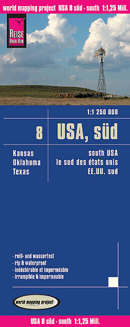 Hochreißfeste und 100% wasserfeste Landkarte USA, Süd aus der Serie world mapping project, erschienen im Reise Know-How Verlag. Diese Karte umfasst die US-Bundesstaaten Kansas, Oklahoma und Texas. Reise Know-How Landkarten zeichnen sich durch besonders stabile...