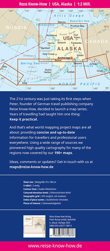 Hochreißfeste und 100% wasserfeste Landkarte USA, Alaska aus der Serie world mapping project. Reise Know-How Landkarten zeichnen sich durch besonders stabiles Kunststoffpapier aus, das beschreibbar ist wie Papier, sogar mit Bleistift. Der Pappumschlag ist abn...
