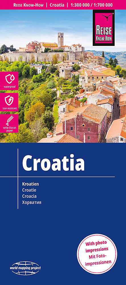Hochreißfeste und 100% wasserfeste Landkarte "Kroatien" aus der Serie world mapping project. Reise Know-How Landkarten zeichnen sich durch besonders stabiles Kunststoffpapier aus, das beschreibbar ist wie Papier, sogar mit Bleistift. Der Pappumschlag ist abne...