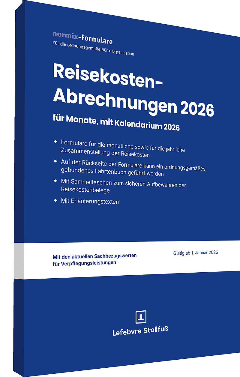 Reisekostenformulare 2026 Für die monatliche sowie für die jährliche Zusammenstellung Ihrer Reisekosten 2026 Auf der Rückseite der Reisekostenformulare 2026 können Sie ein ordnungsgemäßes, gebundenes Fahrtenbuch führen. Bewahren Sie Belege sicher und vollstän...