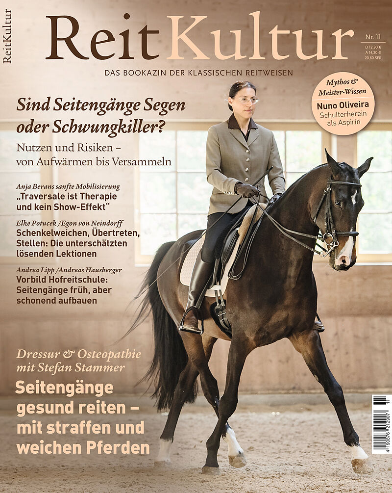 Aus dem Inhalt ReitKultur 11 Sind Seitengänge Segen oder Schwungkiller? 06 Plädoyer Warum Seitengänge präzise Kunst sind und nichts, was das Pferd von sich aus spie- lerisch in der Natur zeigt, beschreibt Colonel Christian Carde, ehemaliger Écuyer en Chef in d...