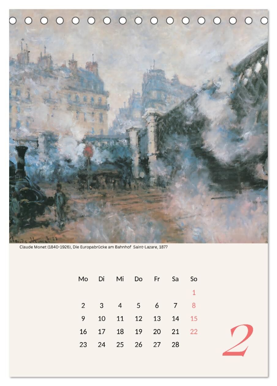 Erleben Sie das Spiel von Licht und Farbe mit einem besonderen Wandkalender, der 12 beeindruckende Werke von Claude Monet zeigt. Tauchen Sie in zauberhafte Landschaften und stimmungsstarke Momente des Stadtlebens ein, die der Meister des Impressionismus in leu...