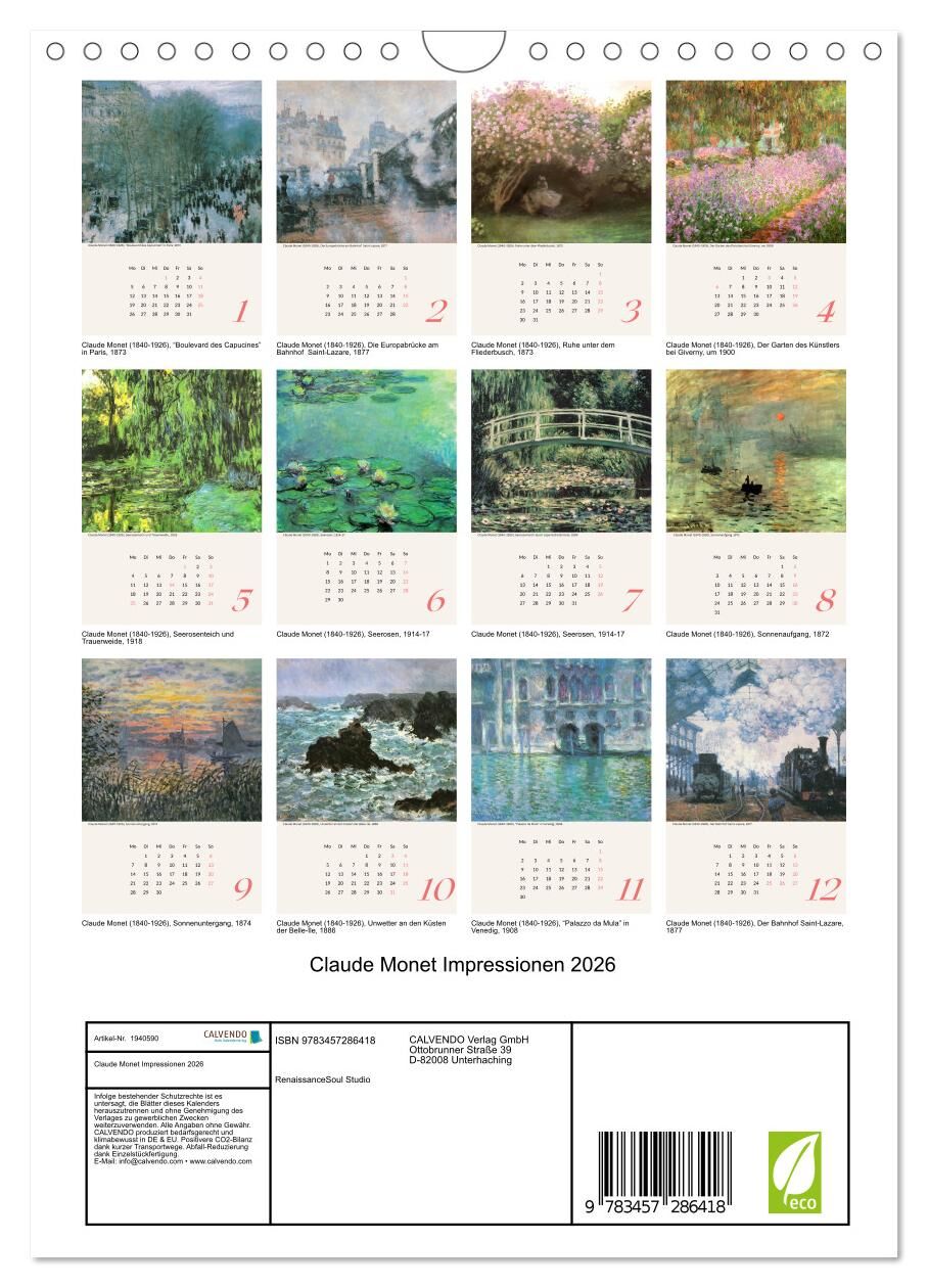 Claude Monet Impressionen 2026 (Wandkalender 2026 DIN A4 hoch), CALVENDO Monatskalender