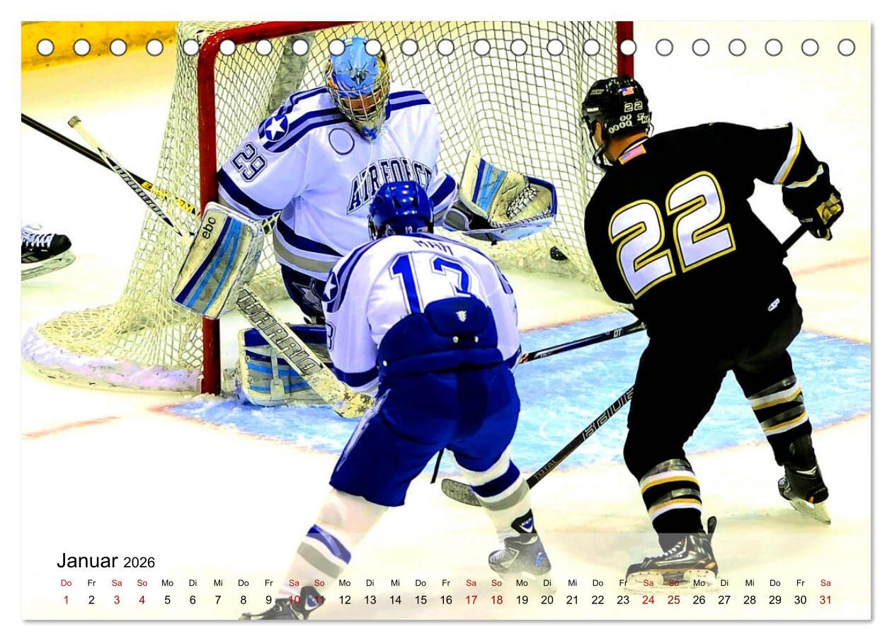 Eishockey ist eine der schnellsten und härtesten Mannschaftssportarten. Beim Kampf um den Puck geht es nicht gerade zimperlich zu. Der außergewöhnliche Kalender zeigt beeindruckende Spielszenen dieses anspruchsvollen Teamsports beim dynamischen Spiel auf spieg...