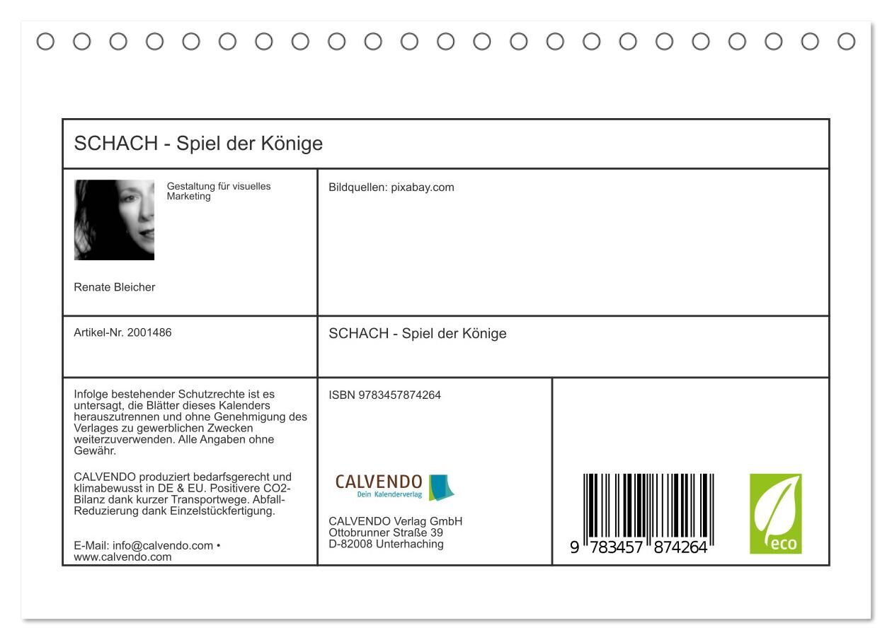 SCHACH - Spiel der Könige (Tischkalender 2026 DIN A5 quer), CALVENDO Monatskalender
