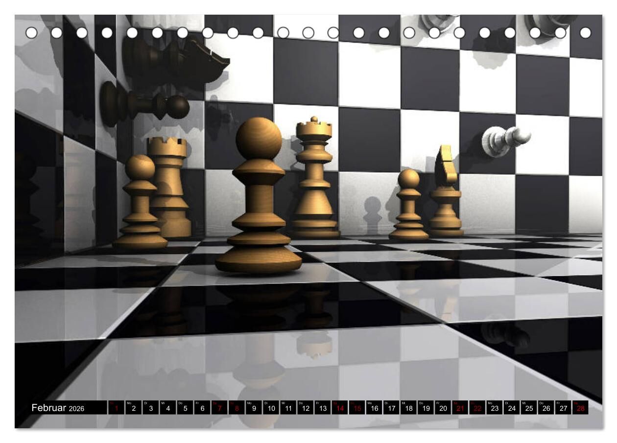 Das Wort Schach wurde vom persischen Wort "Schah" abgeleitet, was König bedeutet. Daher wird Schach gerne als Spiel der Könige bezeichnet, oder auch das königliche Spiel. Auf jedem Kalenderblatt faszinieren uns fantastische Bilder dieses strategischen Brettspi...