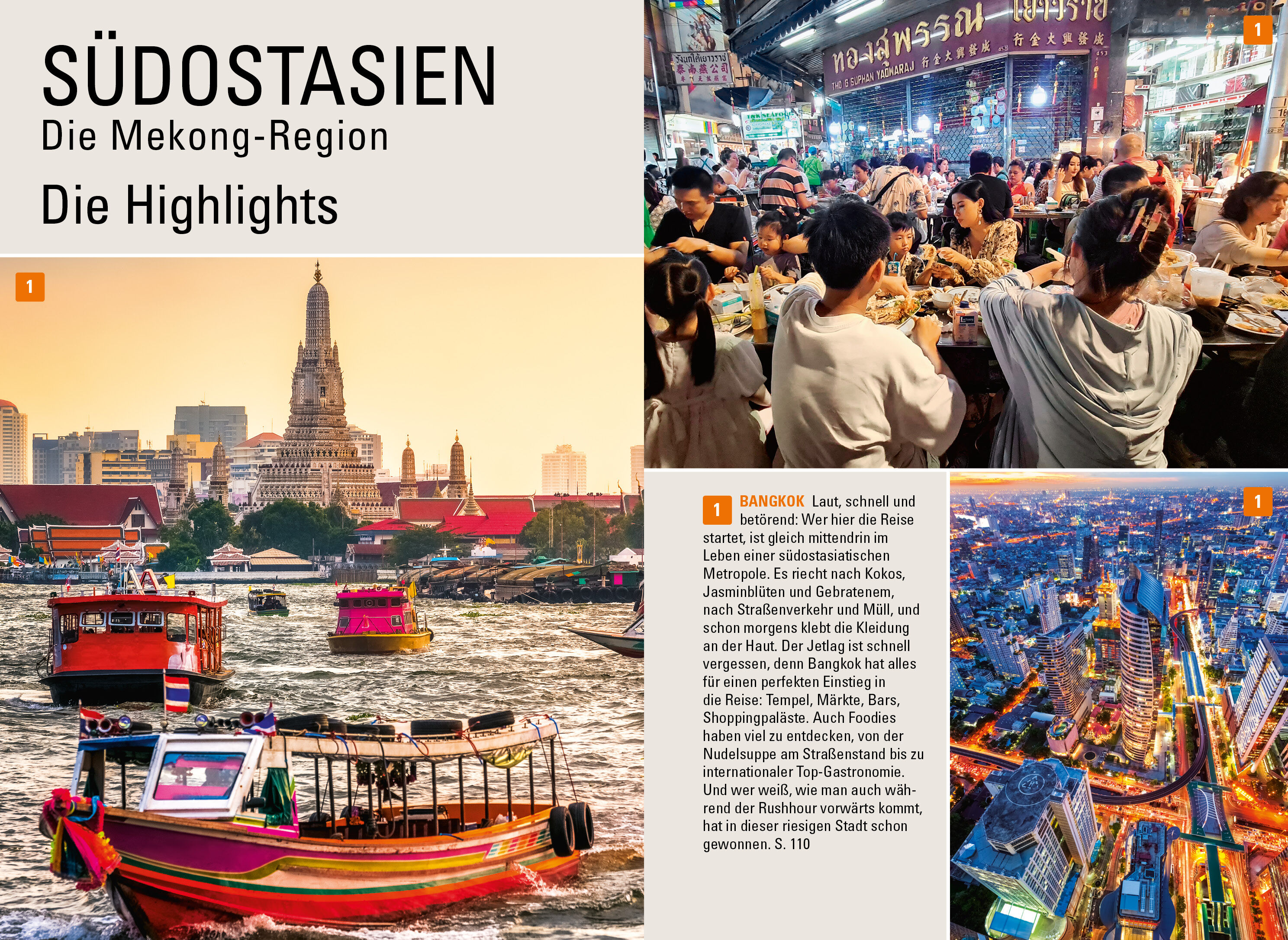 Saftig grüne Reisfelder und zerklüftete Karstberge, kühle Hochplateaus und dichter Dschungel, fruchtbare Flussdeltas und die Tempel und Paläste der großen südostasiatischen Hochkulturen: Laos, Kambodscha, Vietnam und Nord-Thailand stehen auf der Bucketlist vo...