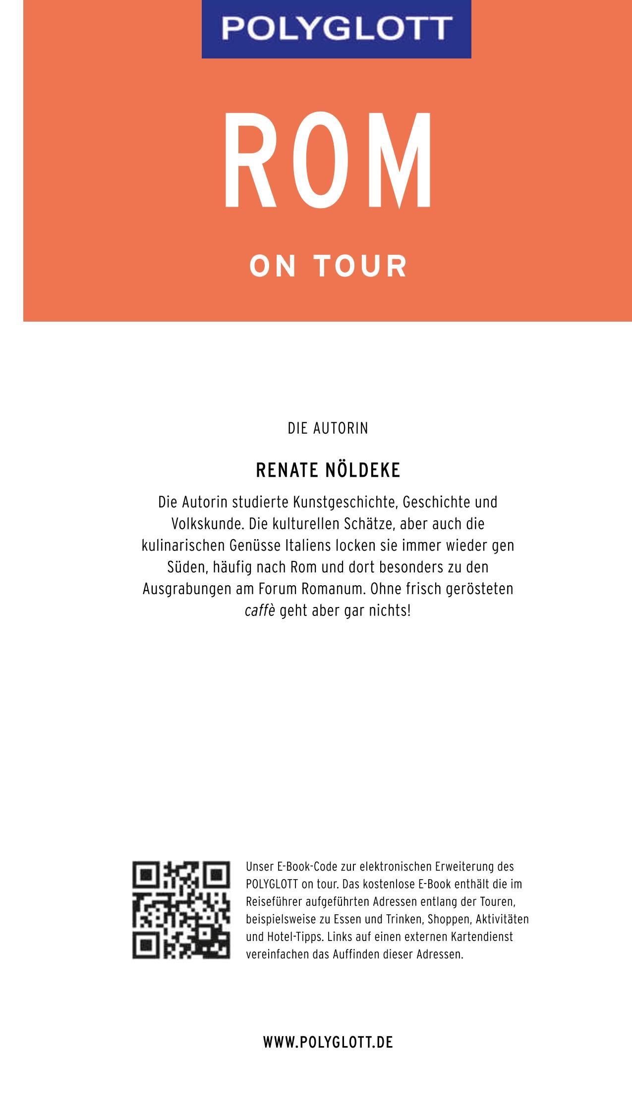 Persönlich & mittendrin! Entspanntes und unabhängiges Reisen mit dem Reiseführer POLYGLOTT on tour Rom, der Sie direkt ins Leben der Locals eintauchen lässt. Die Autorin Renate Nöldeke führt auf abwechslungsreichen Touren der zu spannenden und außergewöhnl...