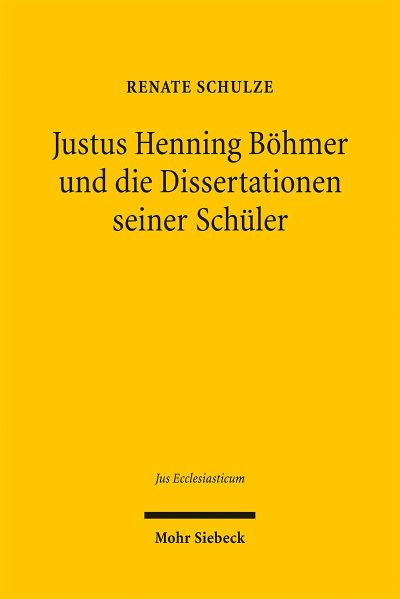 Based on the dissertations defended by Böhmer´s students and their interaction with the Ius Ecclesiasticum Protestantium , Renate Schulze provides an example of the jurisprudence of Protestant canon law in Halle an der Saale. The five-volume Ius Ecclesiasticum...