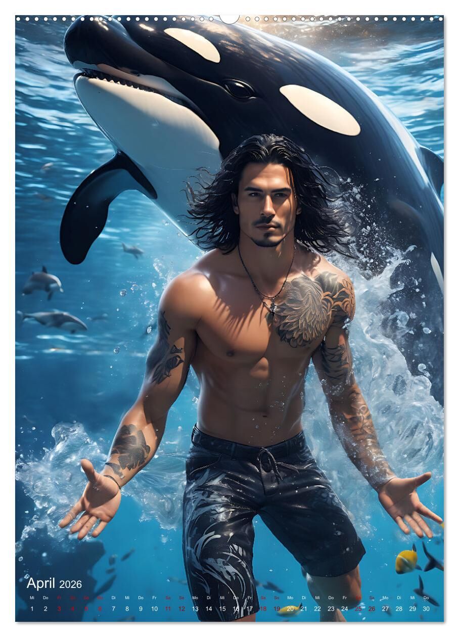Dieser einzigartige, mit KI erstellte Kalender von Renate Utz vereint männliche Stärke und Eleganz mit der Anmut und Schönheit verschiedener Wasserbewohner und bietet Monat für Monat ein erfrischendes und inspirierendes visuelles Erlebnis. Von zutraulichen Del...