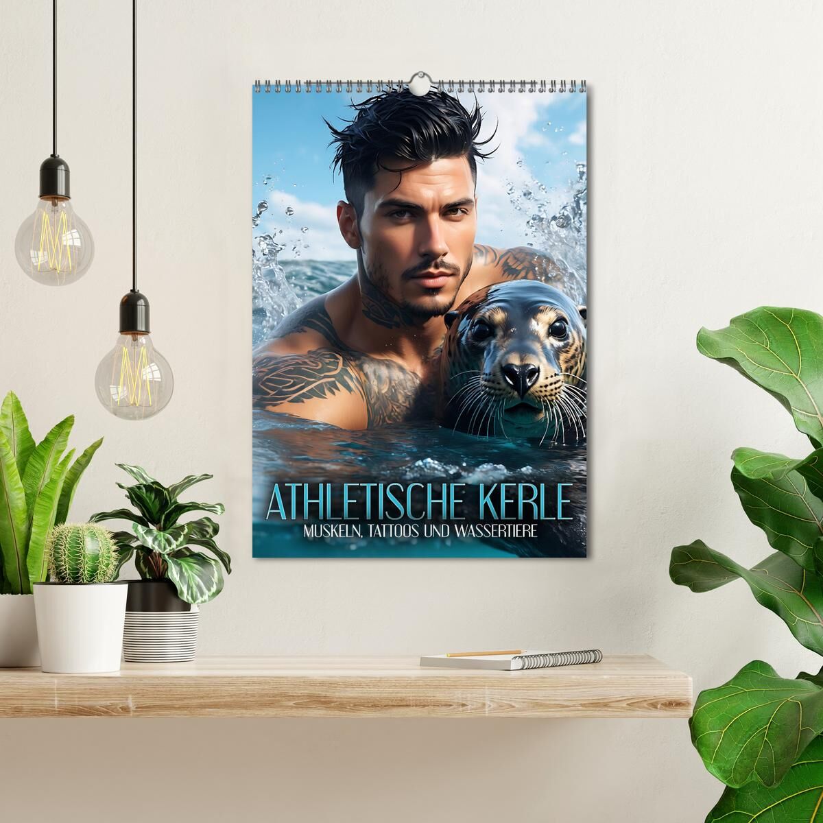Athletische Kerle - Muskeln, Tattoos und Wassertiere (Wandkalender 2026 DIN A3 hoch), CALVENDO Monatskalender