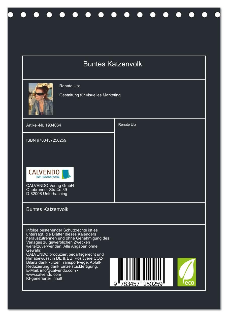 In diesem amüsanten Katzenkalender von Renate Utz stehen künstlerisch gestaltete Katzenbilder im Mittelpunkt! Mit einem Augenzwinkern und einem Hauch von Ironie wurden die Katzen in surrealen, witzigen Situationen abgebildet, die zum Schmunzeln anregen. Die mi...