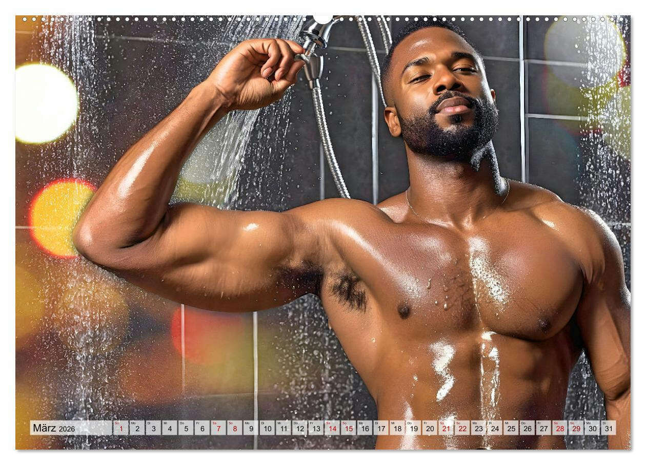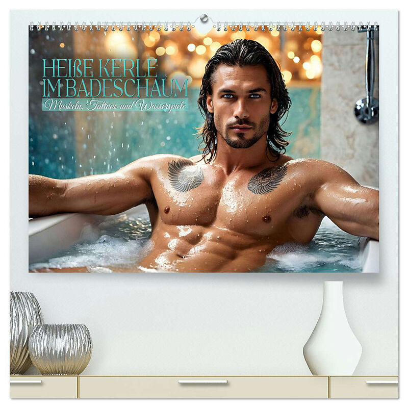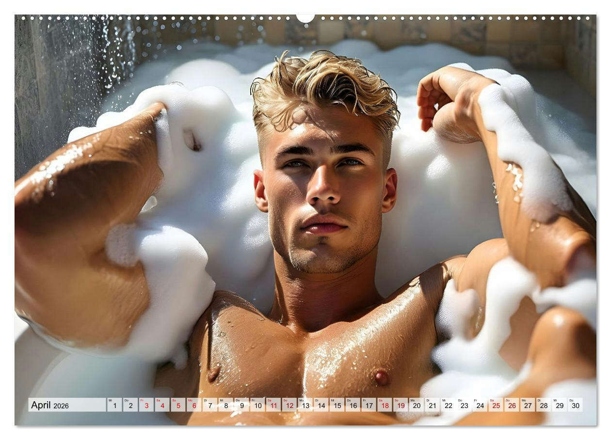 Heiße Kerle im Badeschaum - Muskeln, Tattoos und Wasserspiele (hochwertiger Premium Wandkalender 2026 DIN A2 quer), Kunstdruck in Hochglanz