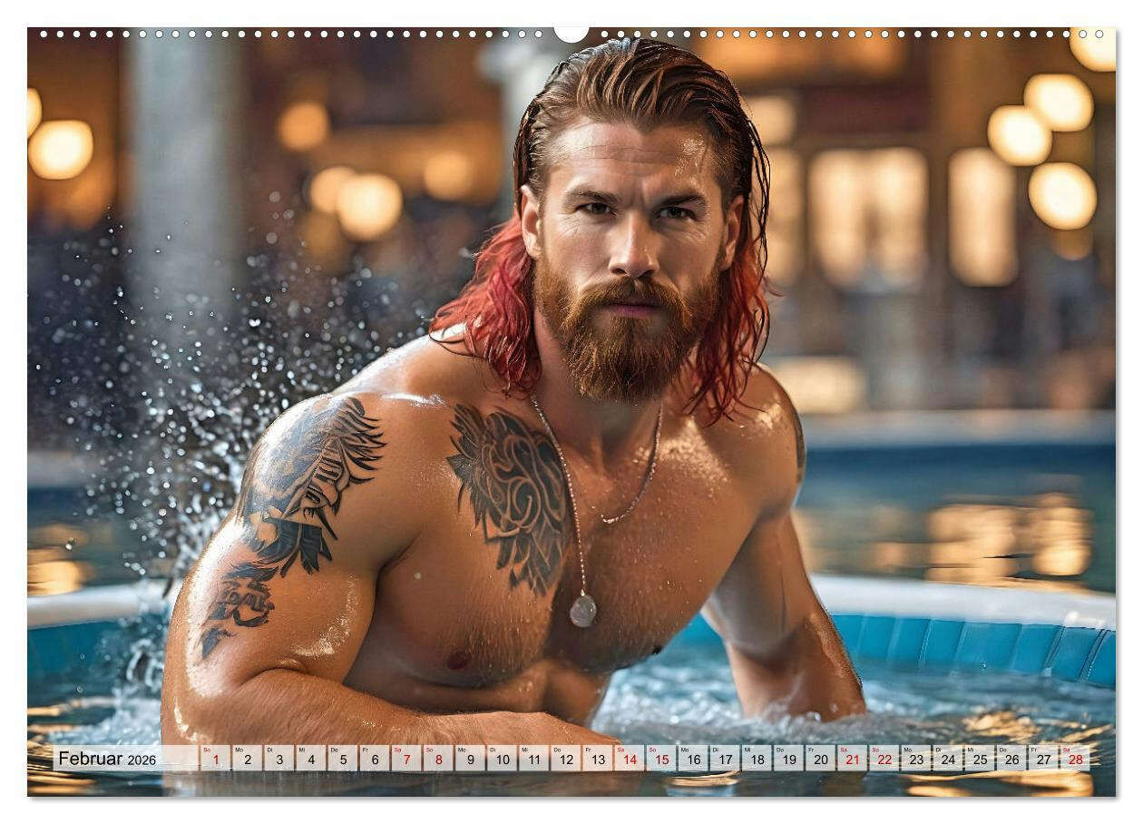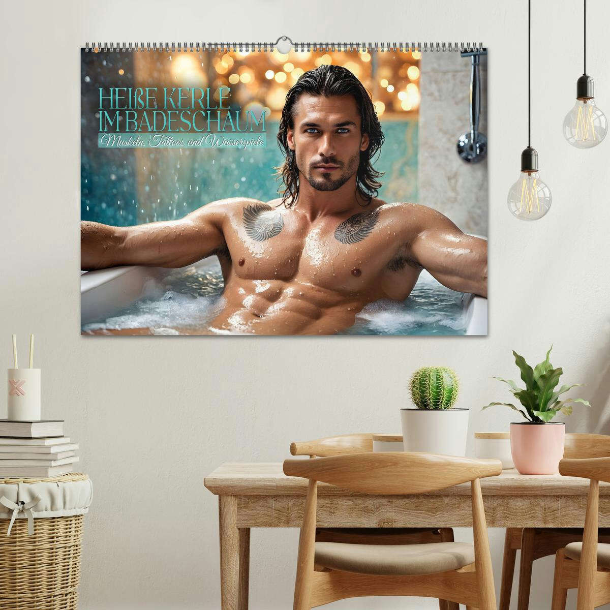 Heiße Kerle im Badeschaum - Muskeln, Tattoos und Wasserspiele (Wandkalender 2026 DIN A2 quer), CALVENDO Monatskalender