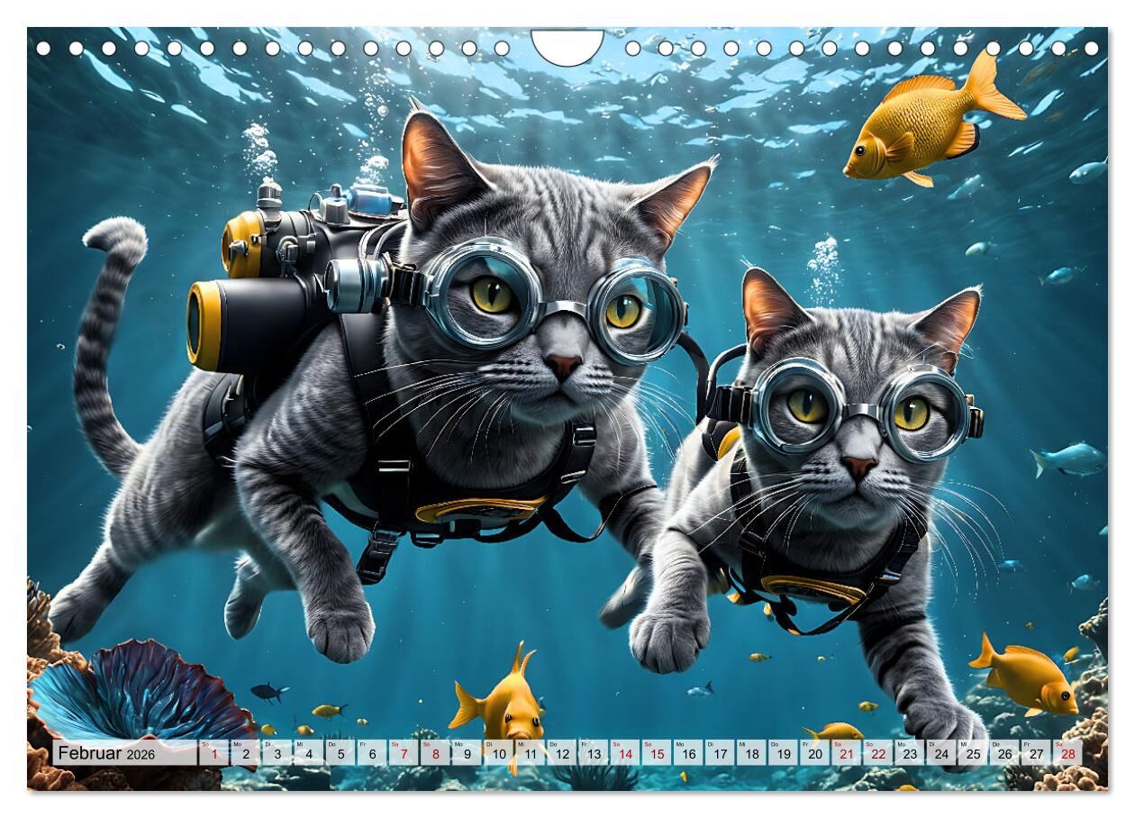 Katzen unter Wasser (Wandkalender 2026 DIN A4 quer), CALVENDO Monatskalender