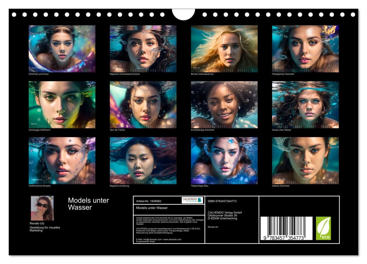 Willkommen in einer faszinierenden Welt voller Eleganz, Schönheit und Kreativität! Der mit KI erstellte Kunstkalender von Renate Utz, lädt Sie dazu ein, in die bezaubernde Symbiose von Kunst und Wasser einzutauchen. Monat für Monat präsentiert dieser Kalender ...