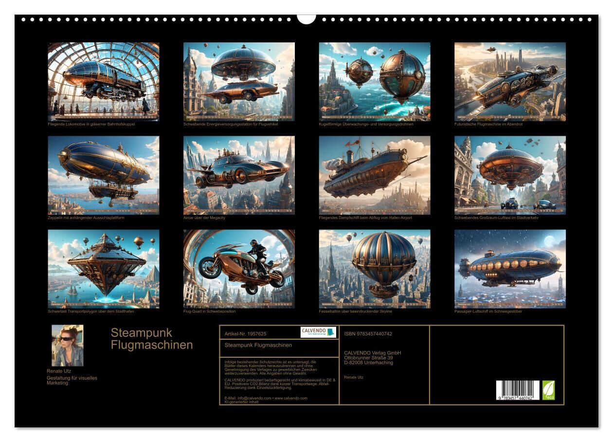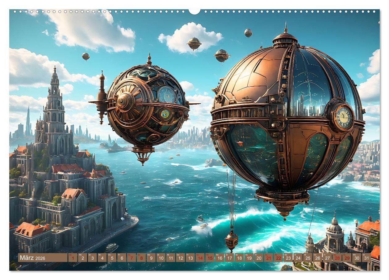 Retrofuturistische Bilder entführen uns in die surreale Steampunk-Welt mit fantastischen fliegenden Vehikeln jenseits unserer Vorstellungskraft. Begib Dich auf eine inspirierende Reise in fiktive Welten und bestaune jeden Monat ein anderes mechanisches Wunderw...