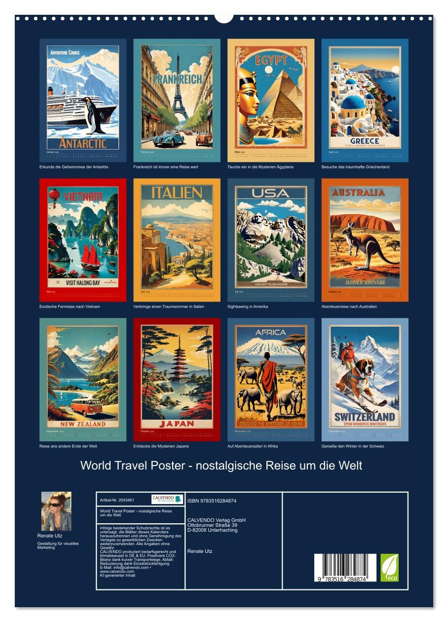 Begib dich auf eine Weltreise mit Kultcharakter. Lass dich verzaubern von exotischen Ländern und fernen Kontinenten rund um den Globus. Der einzigartige Kalender spiegelt die Schönheit und den Charme vergangener Epochen wider, die mit raffinierten, mithilfe vo...