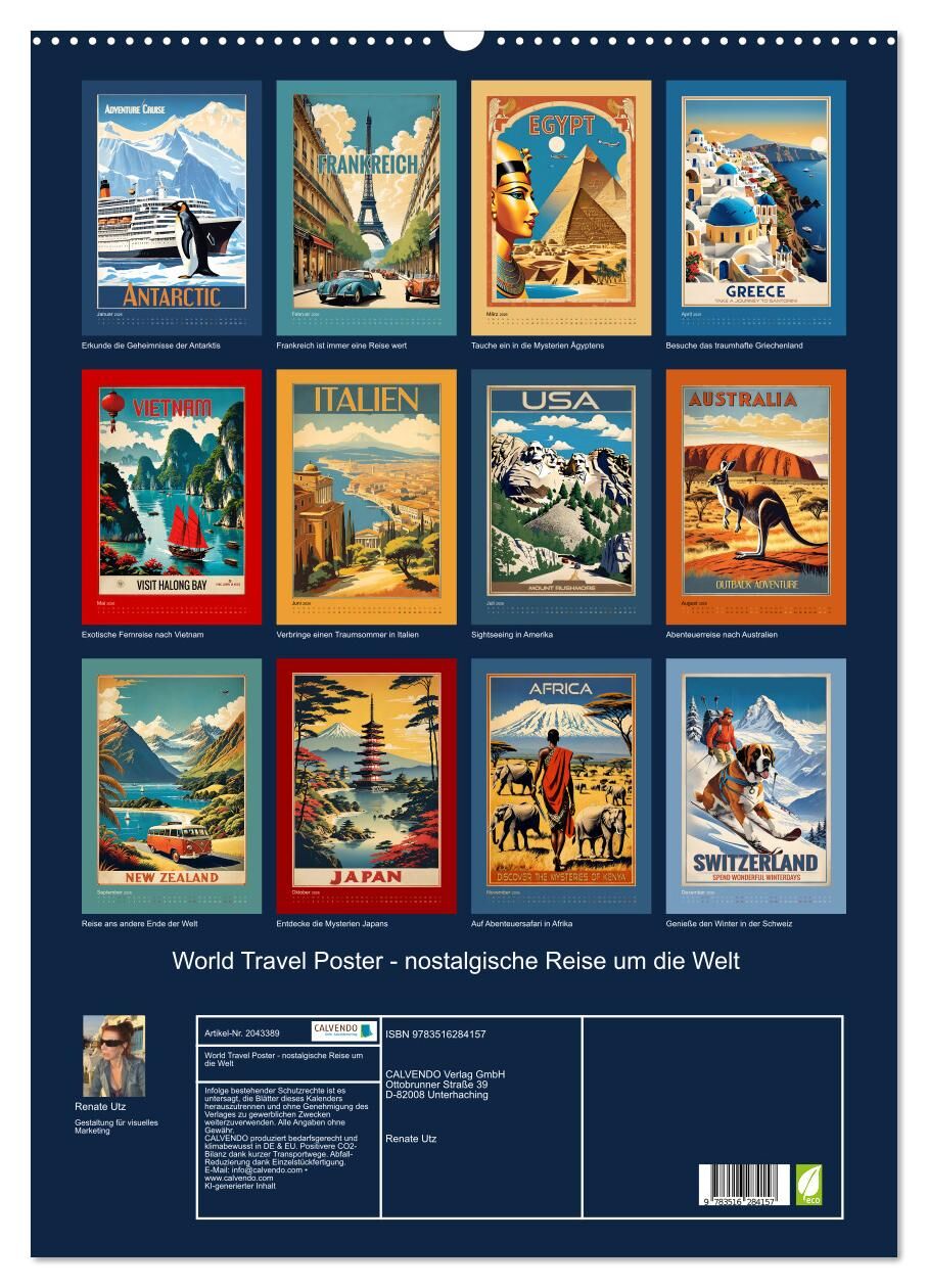 World Travel Poster - nostalgische Reise um die Welt (Wandkalender 2026 DIN A2 hoch), CALVENDO Monatskalender