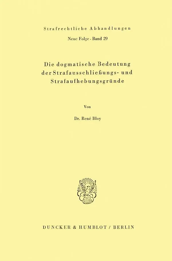 Die dogmatische Bedeutung der Strafausschließungs- und Strafaufhebungsgründe.