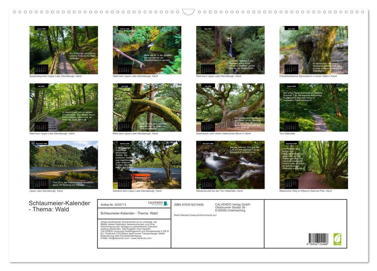 Durchatmen und noch etwas dazulernen: Dieser Kalender bietet jeden Monat ein tolles neues Motiv aus dem Wald. Neben dem ästhetischen Aspekt erfüllt der Kalender einen pädagogischen Zweck mit interessanten Fakten zum Thema. Somit wird jeder zum Schlaumeier. 12 ...