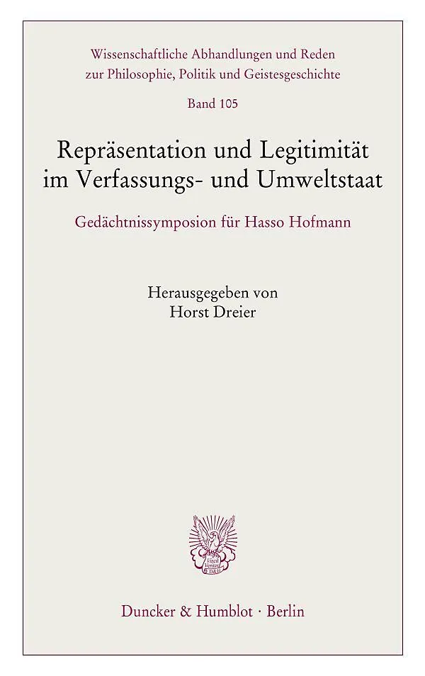 Der Band versammelt die Beiträge zum Gedächtnissymposion für Hasso Hofmann vom November 2021 in München. Der Themenbogen spannt sich von einer Analyse seiner staats- und verfassungsrechtlichen Schriften bis hin zu Fragen nach der Bedeutung Adolf J. Merkls für ...