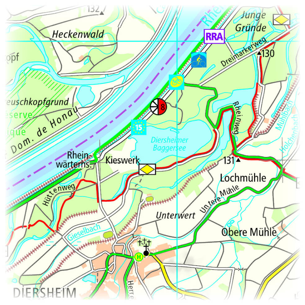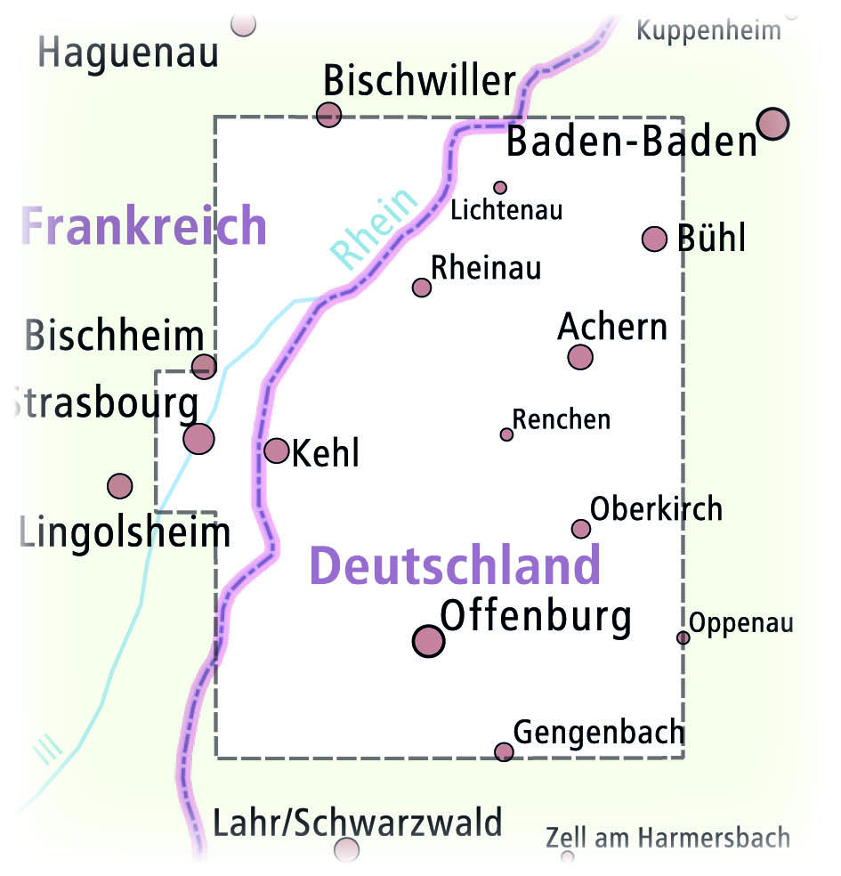 Die Rad- und Wanderkarte Rheinau Ortenau Straßburg Offenburg stellt eine landschaftlich sehr abwechslungsreiche Region in den Mittelpunkt, die dank zahlreicher Rad- und Wanderwege gut aktiv erkundet werden kann. Der östliche Kartenteil präsentiert den Naturpar...