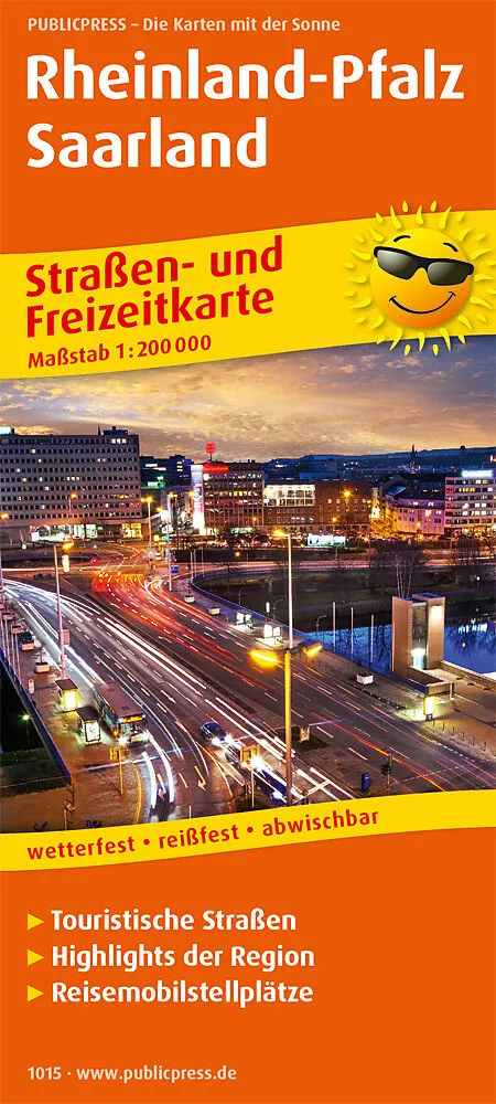 Straßen- und Freizeitkarte für Rheinland-Pfalz mit Touristischen Straßen, Highlights der Region und Reisemobilstellplätzen. Schnelle Orientierung durch das übersichtliche Straßennetz. In bewährter PUBLICPRESS-Qualität: wetterfest, reißfest, beschrift- und abwi...