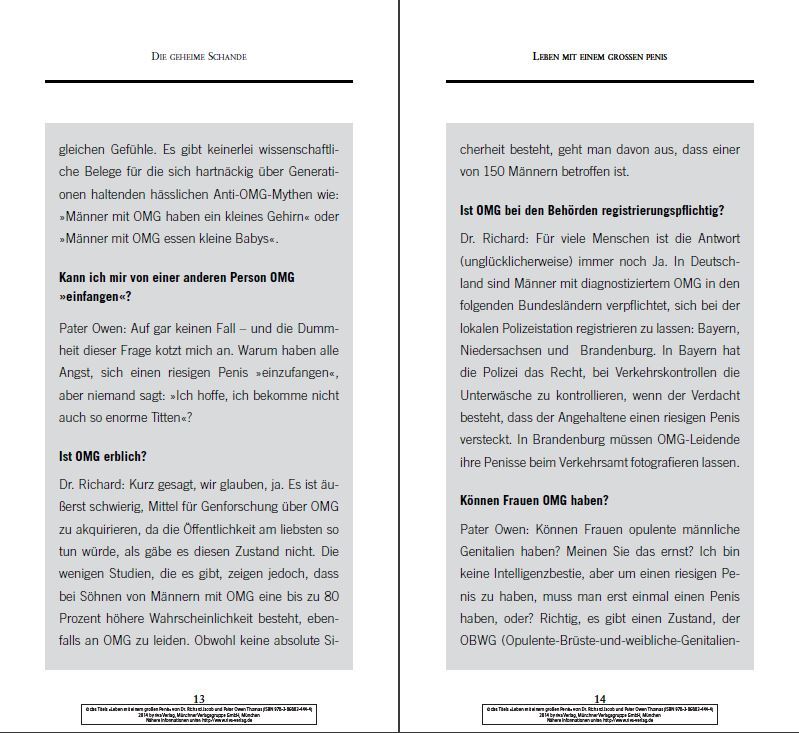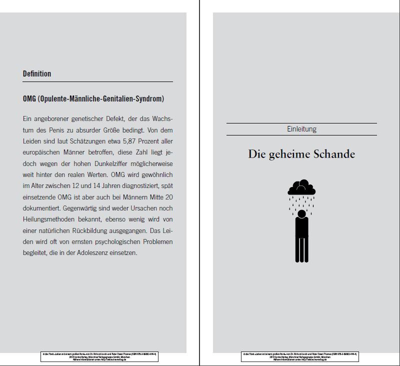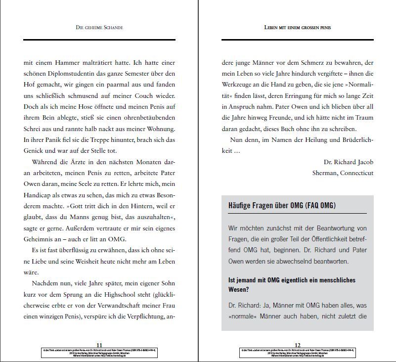 Endlich gibt es das erste Selbsthilfebuch für Männer, die unter OMG (Opulenten männichen Genitalien) leiden. OMG ist ein genetischer Defekt, bei dem der Penis absurd große Ausmaße annimmt. Jedes Jahr wird bei Tausenden von Männern OMG diagnostiziert. Leider be...