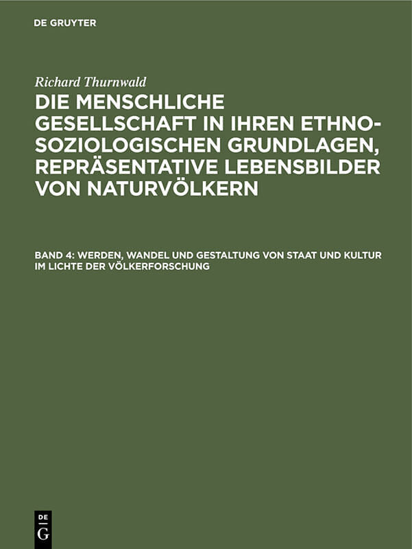 Richard Thurnwald: Die menschliche Gesellschaft in ihren ethno-soziologischen... / Werden, Wandel und Gestaltung von Staat und Kultur im Lichte der Völkerforschung