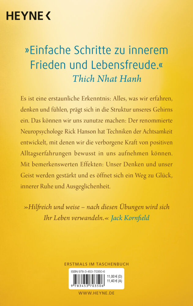 Es ist eine erstaunliche Erkenntnis: Alles, was wir erfahren, denken und fühlen, prägt sich in die Struktur unseres Gehirns ein! Das können wir uns zunutze machen: Der renommierte Neuropsychologe Rick Hanson hat Techniken der Achtsamkeit entwickelt, mittels de...