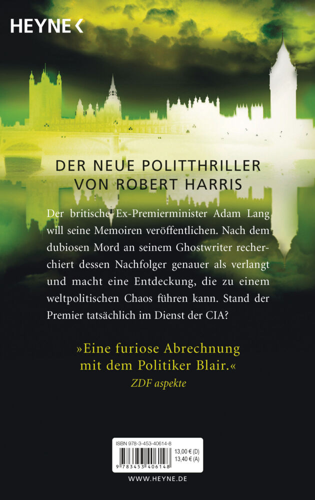 Der britische Ex-Premierminister Adam Lang will seine Memoiren veröffentlichen. Nach dem dubiosen Tod seines Ghostwriters recherchiert dessen Nachfolger genauer als verlangt und macht eine Entdeckung, die zu einem weltpolitischen Chaos führen kann. War der Premier im »Krieg gegen den Terror« eine Marionette der CIA?Niemand zuvor hat Großbritannien so lange regiert wie Premierminister Adam Lang. Nun ist er aus dem Amt geschieden, und alle Welt erwartet sehnsüchtig die Memoiren des charismatischen Machtmenschen. Sensationelle zehn Millionen Dollar Vorschuss hat ihm sein amerikanischer Verleger geboten. Unter zwei Bedingungen: Das Buch muss binnen zwei Jahren auf dem Markt sein, und der Ex-Premier soll in Sachen Krieg gegen den Terror kein Blatt vor den Mund nehmen. Ein halbes Jahr vor dem Termin passiert das Undenkbare: Am Ufer der US-amerikanischen Insel Martha's Vineyard, wohin sich Adam Lang zum Arbeiten an seinen Erinnerungen zurückgezogen hat, wird die Leiche seines Ghostwriters angeschwemmt. War es Mord? Schnell wird ein Ersatzmann gefunden, der auf eigene Faust noch genauer als sein Vorgänger in der Vergangenheit des Machtpolitikers recherchiert. Und dabei stößt er auf Dinge, die so brisant sind, dass deren Veröffentlichung zu einem weltpolitischen Chaos führen würde.