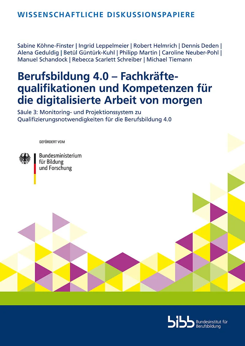 From the point of view of the labor market, this publication describes the effects of digitization of the labor market and the resulting demands on employees in terms of a monitoring and projection system for qualification needs for Vocational Training 4.0. Fo...