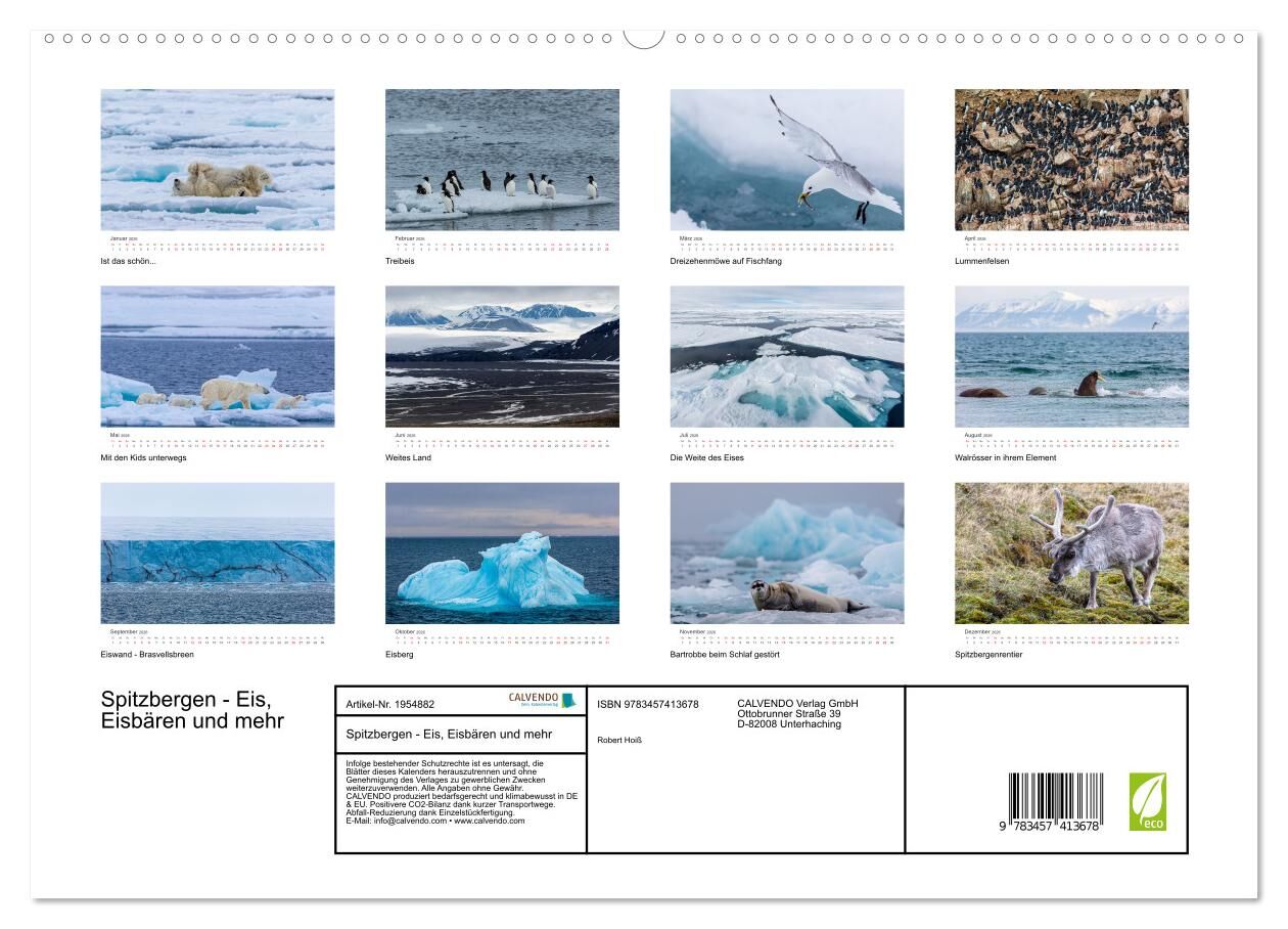 Spitzbergen - Eis, Eisbären und mehr (hochwertiger Premium Wandkalender 2026 DIN A2 quer), Kunstdruck in Hochglanz