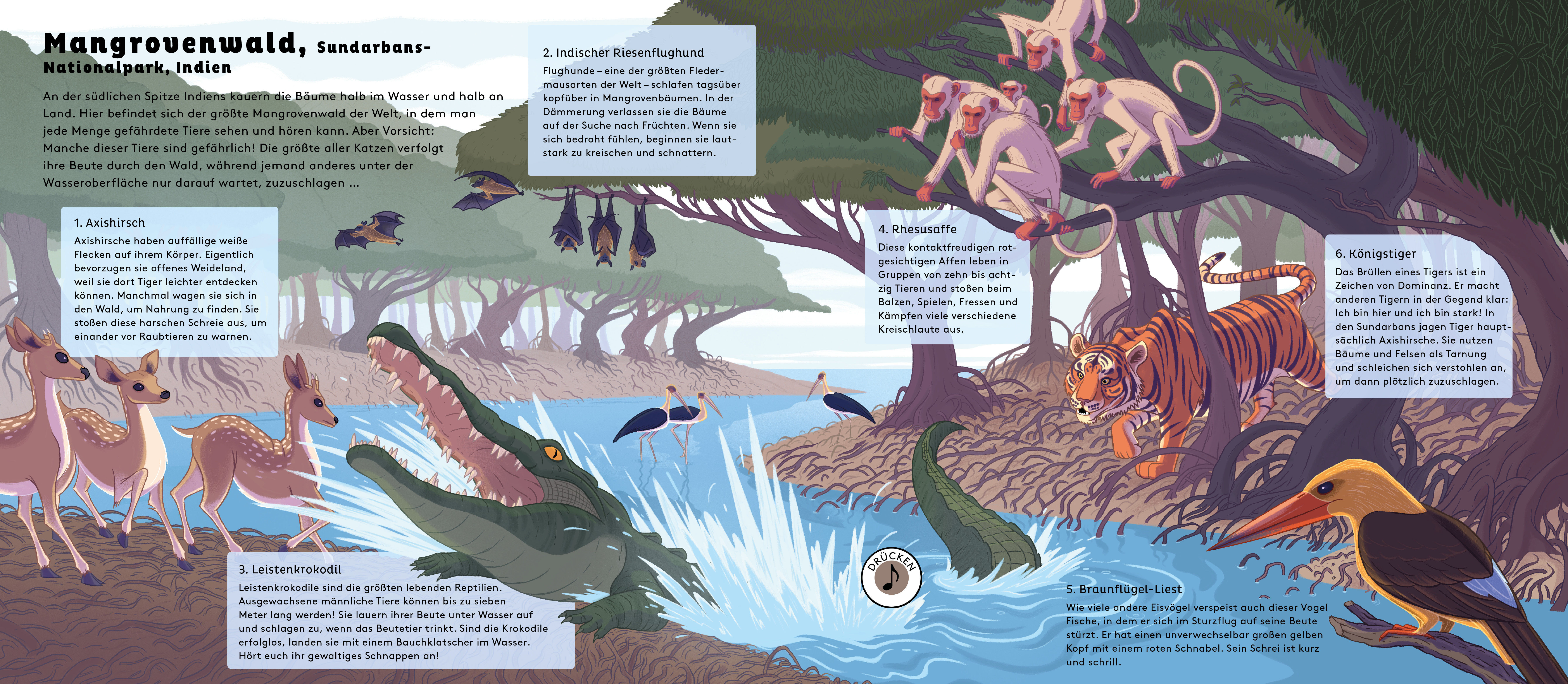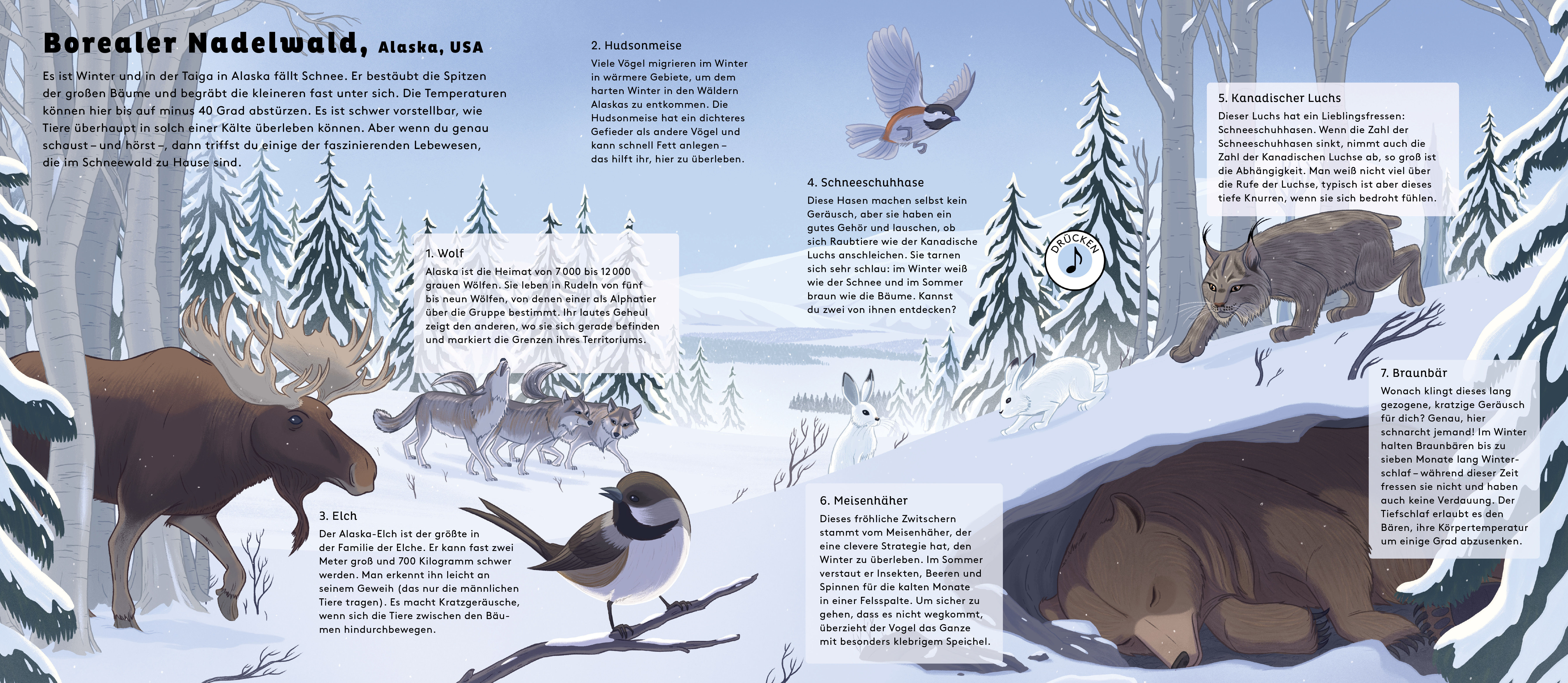 Das Sound-Buch mit Tierstimmen aus der ganzen Welt Drück auf die Note auf jeder Seite und lausche den tierischen Chören aus zehn unterschiedlichen Waldgegenden der Erde! In diesem Buch kannst du über 60 verschiedene Tiergeräusche entdecken: das tiefe Knurren d...