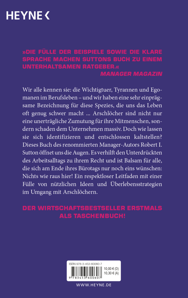 Monatelang auf allen Wirtschafts-Bestsellerlisten! Wir alle kennen sie: die Wichtigtuer, Intriganten, Tyrannen und Egomanen im Berufsleben und wir haben eine sehr einprägsame Bezeichnung für diese Spezies. Robert Sutton liefert den Beweis: Arschlöcher sind nic...Monatelang auf allen Wirtschafts-Bestsellerlisten!