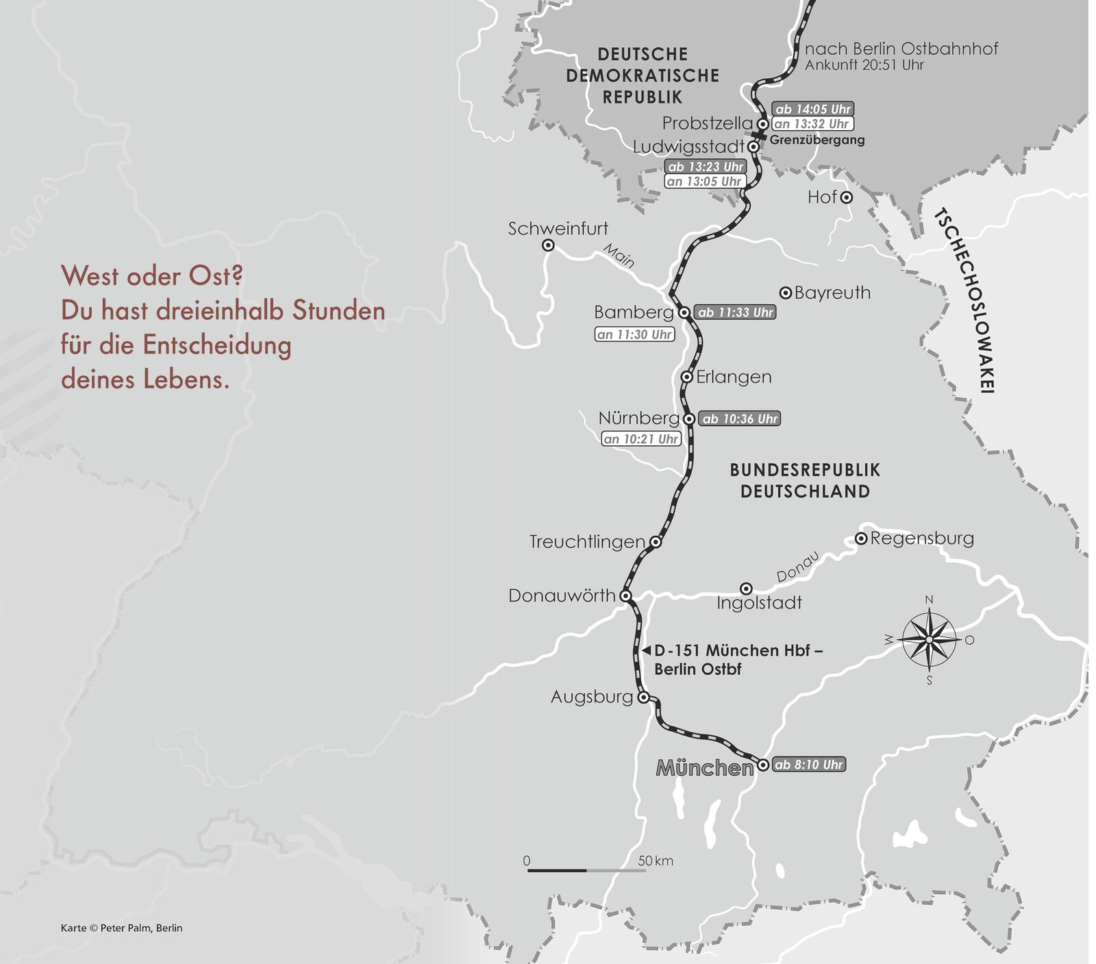 Heute bauen sie die Mauer. Du sitzt im Zug zurück in die DDR . Bleibst du im Westen, oder fährst du nach Hause? 13. August 1961, 8:10 Uhr. Pünktlich verlässt der Interzonenzug D-151 die bayrische Hauptstadt in Richtung Ostberlin . Die meisten Passagiere sind ...