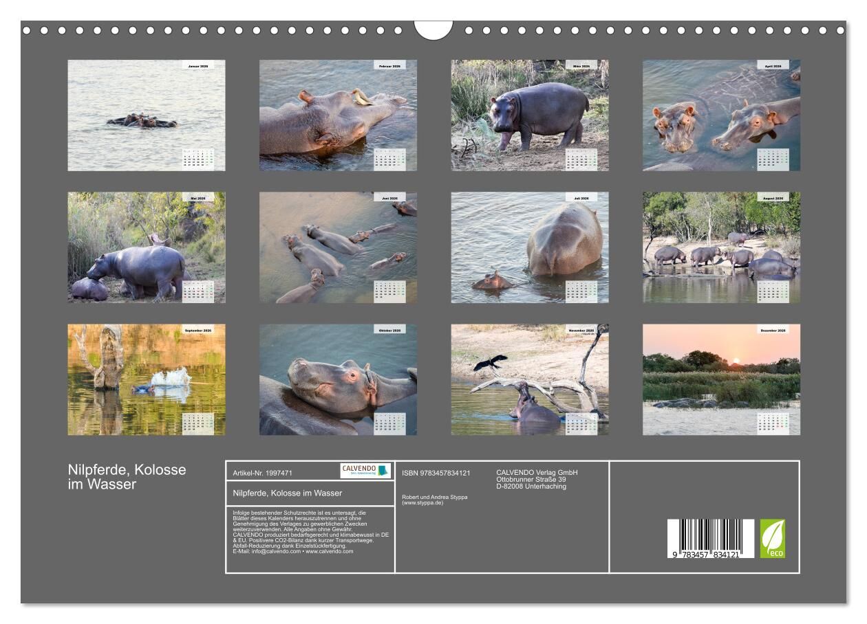 Nilpferde, Kolosse im Wasser (Wandkalender 2026 DIN A3 quer), CALVENDO Monatskalender