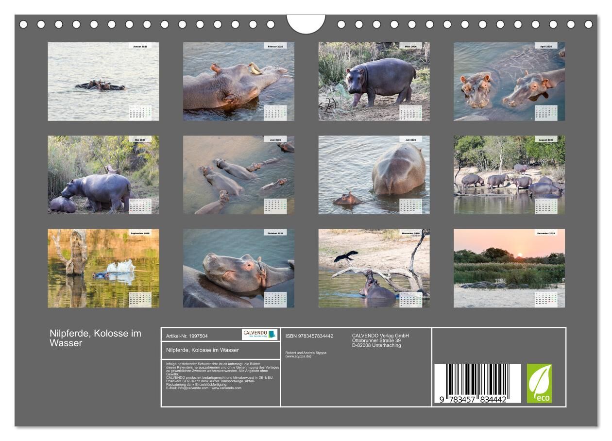 Nilpferde, Kolosse im Wasser (Wandkalender 2026 DIN A4 quer), CALVENDO Monatskalender