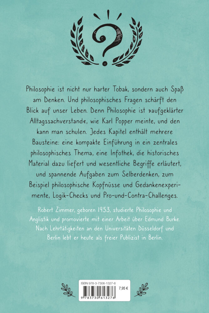 Philosophie ist nicht nur harter Tobak, sondern auch Spaß am Denken. Und philosophisches Fragen schärft den Blick auf unser Leben. Denn Philosophie ist »aufgeklärter Alltagssachverstand«, wie Karl Popper meinte, und den kann man schulen. Jedes Kapitel enthält ...