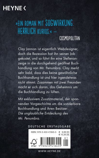 Der SPIEGEL-Bestseller erstmals im Taschenbuch Clay Jannon ist eigentlich Webdesigner, doch die Rezession hat ihn seinen Job gekostet. So führt ihn eine Stellenanzeige in die durchgehend geöffnete Buchhandlung von Mr. Penumbra. Clay merkt bald, dass dies keine...