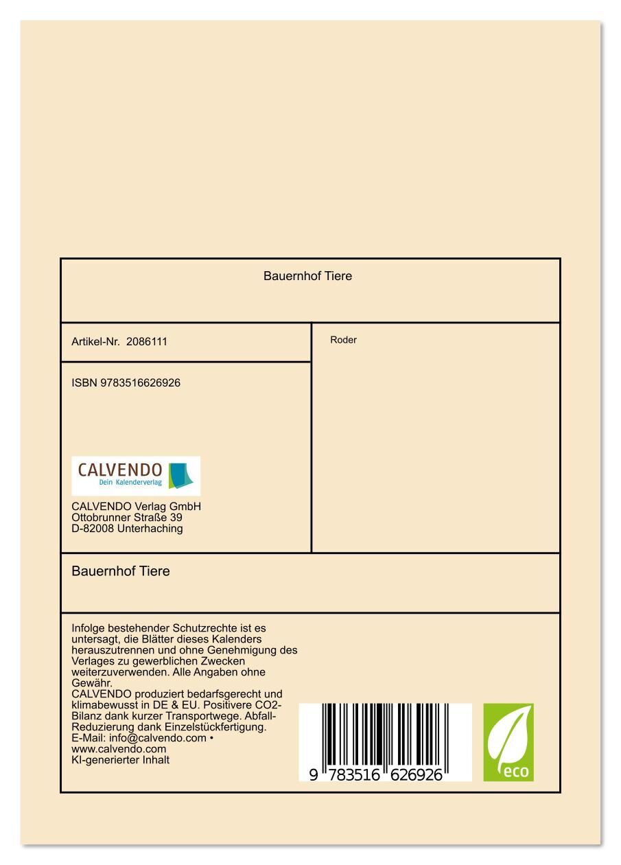 Bauernhof Tiere (Tischkalender 2026 DIN A5 hoch), CALVENDO Monatskalender