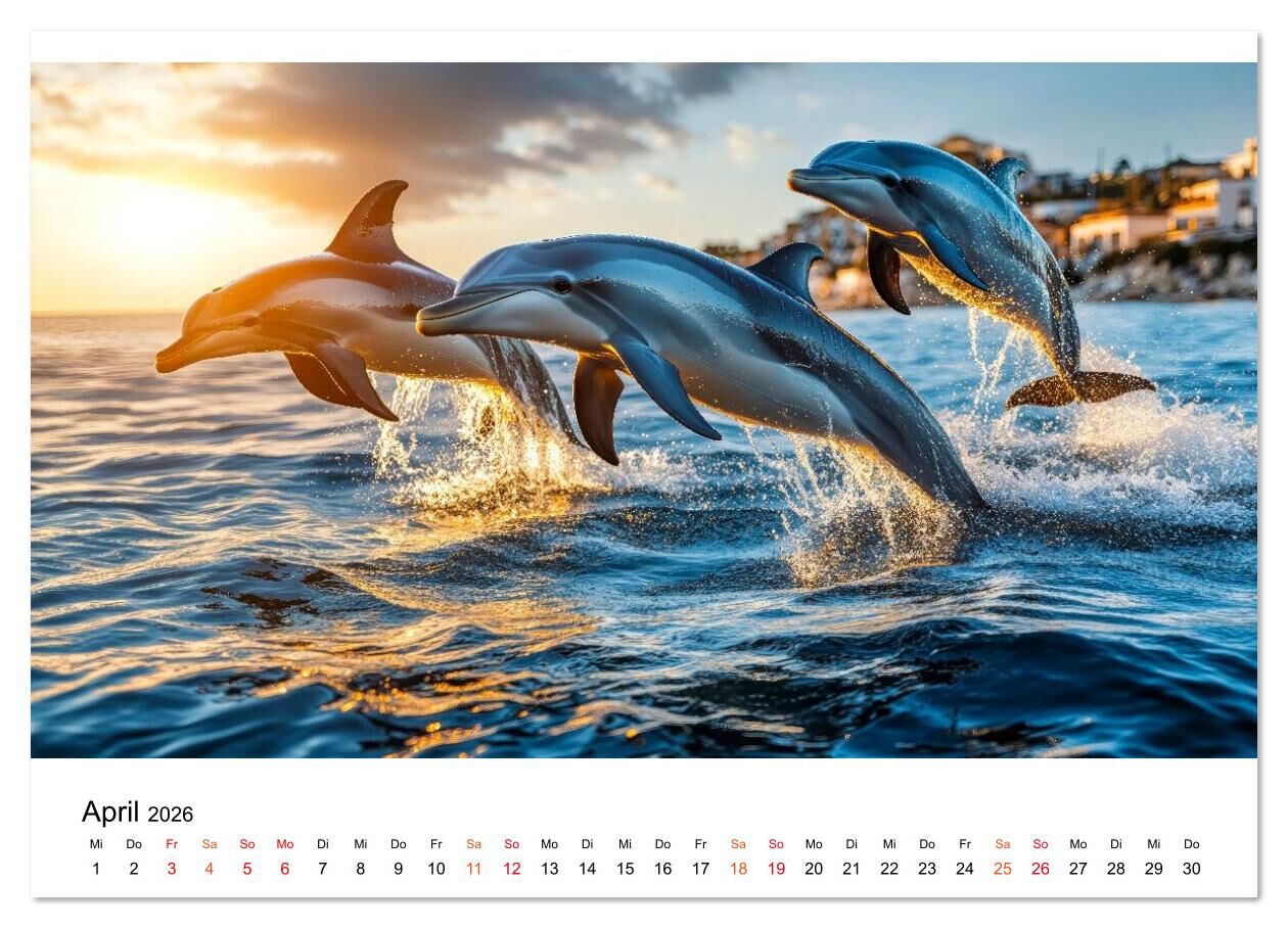 Entdecken Sie eine Welt voller Anmut, Freiheit und Lebensfreude mit atemberaubenden KI-generierten Bildern. Ob elegant aus den Wellen springend, pfeilschnell durchs Wasser gleitend oder sanft in der Tiefe schwebend Delfine verzaubern mit ihrer Energie, ihrer V...